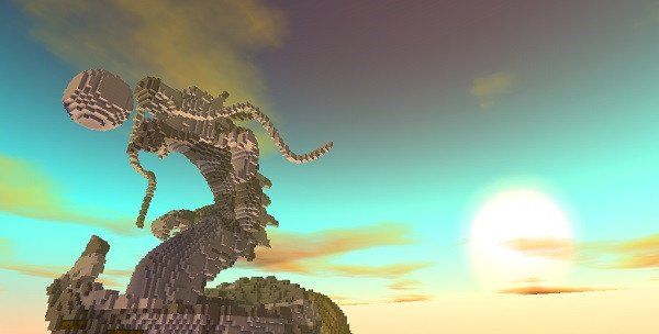 3、用方块造东西。想建啥建啥。下图是熊宝和朋友半个月搭的飞龙。